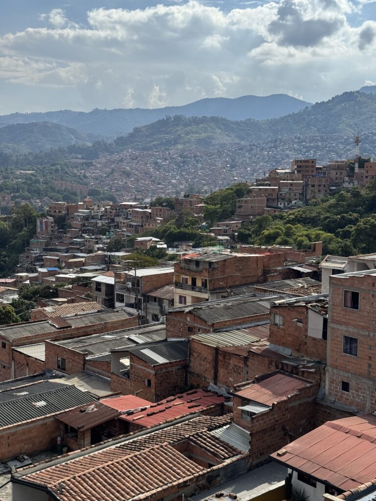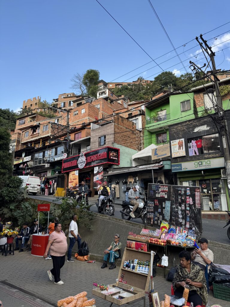 È una città costruita in una valle, completamente circondata da montagne. Le case salgono sulle colline come un mosaico infinito, una sopra l’altra, e questo la rende unica: non la “attraversi” soltanto, la guardi sempre anche dall’alto, perché Medellín è verticale. Ed è proprio questa morfologia ad aver influenzato tutto: i quartieri, le distanze, la povertà in alcune zone… e anche la rinascita.
