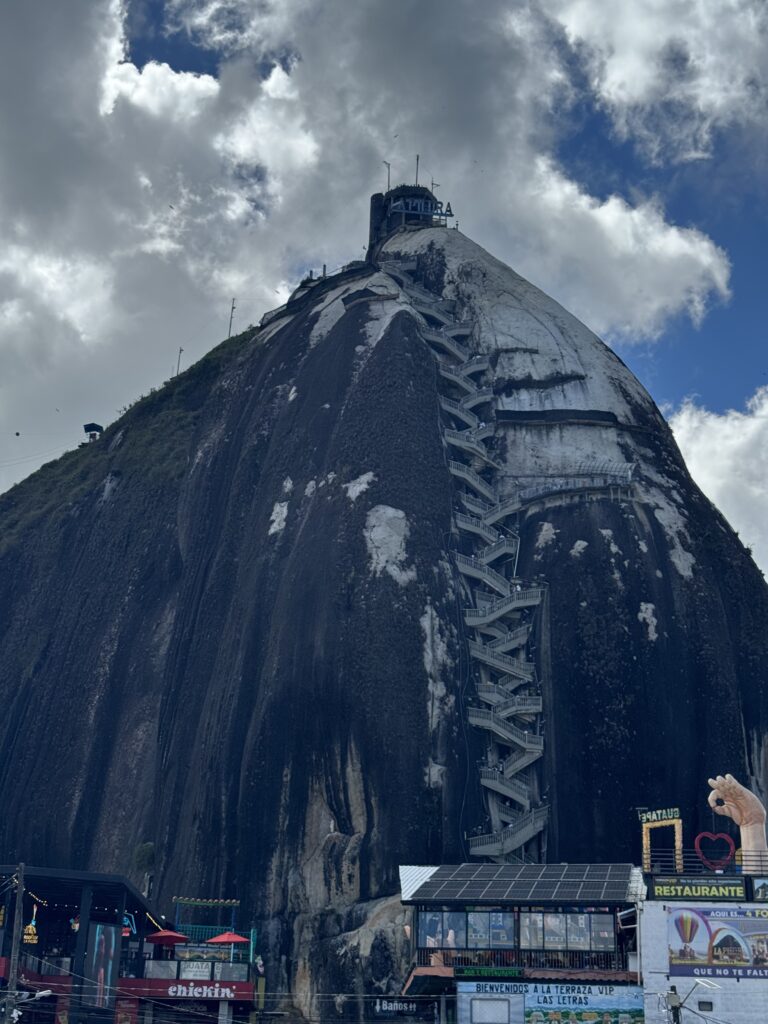 Per chi non lo sapesse, Piedra del Peñol è un gigantesco monolite granitico di circa 200 metri di altezza, circondato da un lago artificiale che ne amplifica la spettacolarità. La sua forma imponente e liscia lo rende un vero simbolo. Durante il tragitto, facciamo alcune soste per vedere lama e alpaca, e poi arriviamo al parcheggio principale. E lì… sbam: davanti a noi si erge questo immenso monolite, che toglie il fiato.