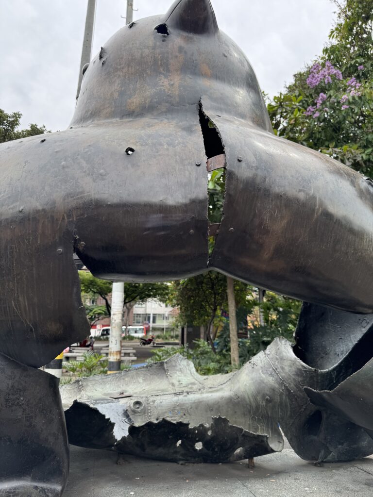 Qui c’è un’altra statua di Botero, ma questa ha una storia che ti stringe lo stomaco.